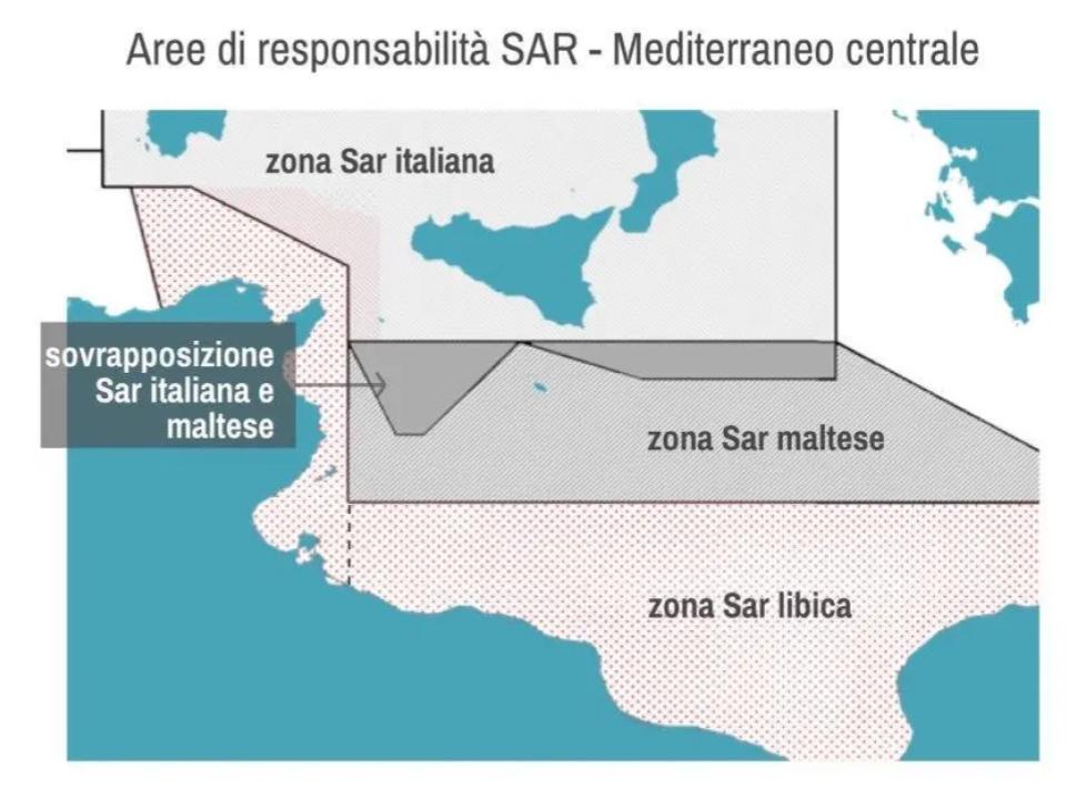 Exemple : espaces communs entre l’Italie et Malte. Dans ces zones, à qui appartient la responsabilité du sauvetage ?